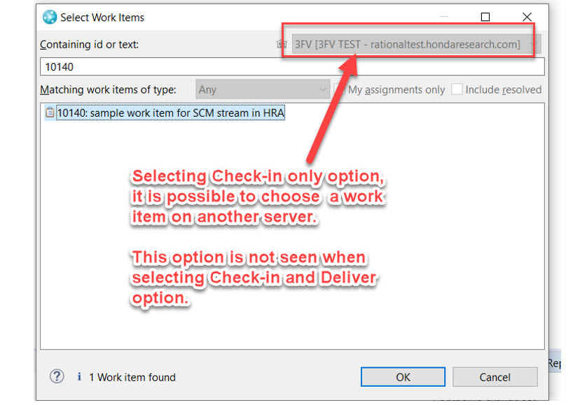 SCM Check-in and Deliver option does not provide option to link to a change request on another RTC server